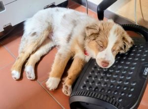 Mini American Shepherd Cooper eingezogen, auch er wird sie nun täglich zur Arbeit begleiten